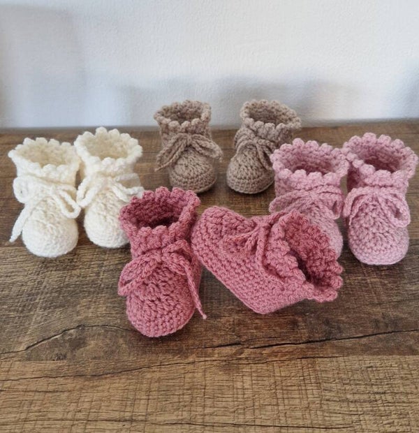 Slofjes zijn gemaakt van 100% acryl en verkrijgbaar en vele kleuren en in 2 maten.